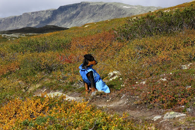 Håper det blir en time eller to med litt fint vær i morgen, så kanskje man får tatt seg en god tur og kanskje tatt noen nye høstbilder av tassen. Men siden jeg har sagt intet innlegg uten bilder, blir det noen høstbilder fra 2009, lille valpisen på tur :